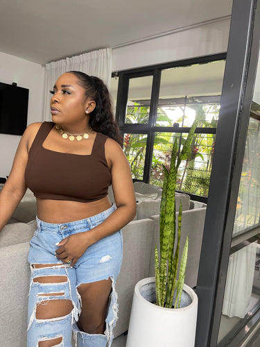 Chocolate Brown Lounge By The Cabana Square Neck Tank Top