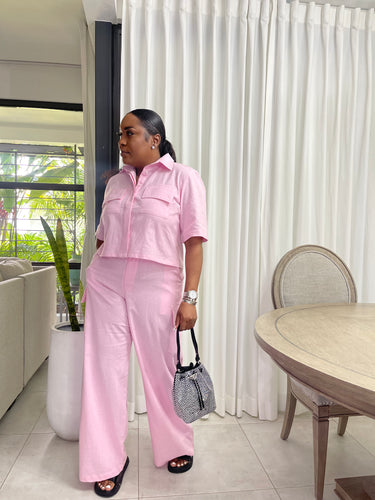 Pink “TOBAGO” Frill Sleeved Linen Wrap Top