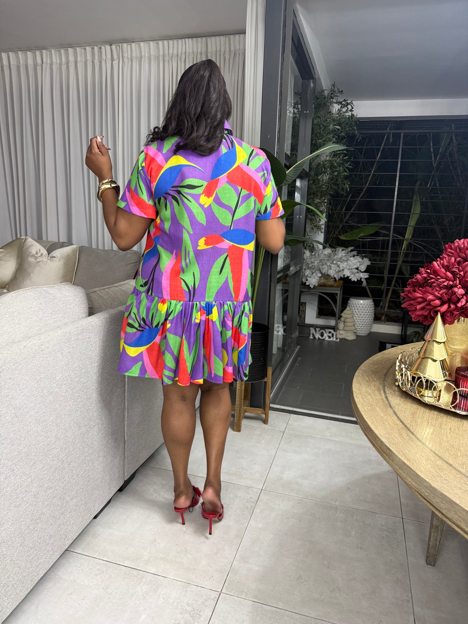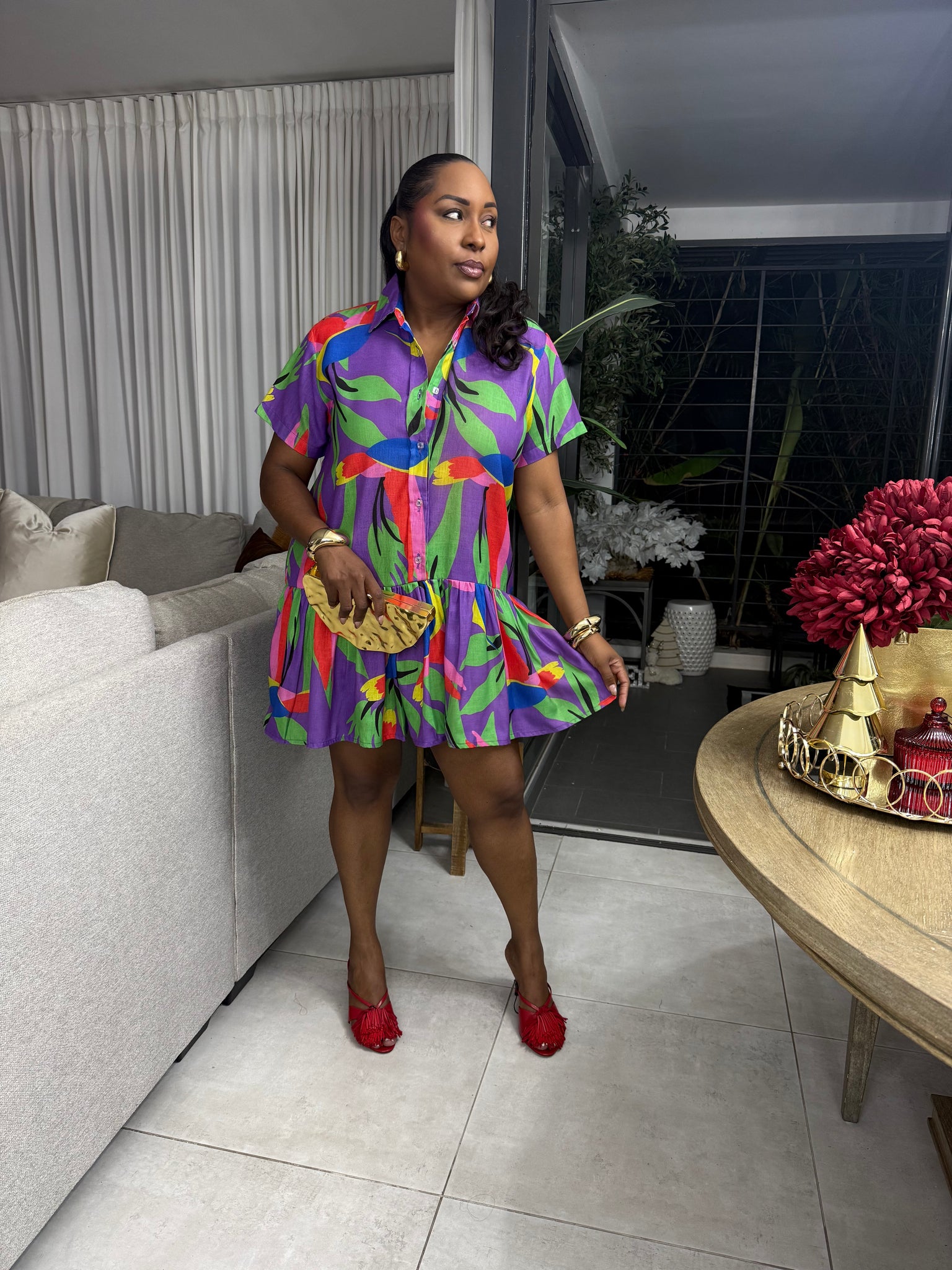 She’s back! brighter, bolder, and ready for plans. Our Santorini II is the refreshed take on a Cabana classic, now in the Paradise Orchid print. With an effortless oversized fit, button-front styling, and a flirty tiered hem, this is your throw-on-and-go piece that still looks put together. Dress it down with flats or slide into heels and let the print do the talking.