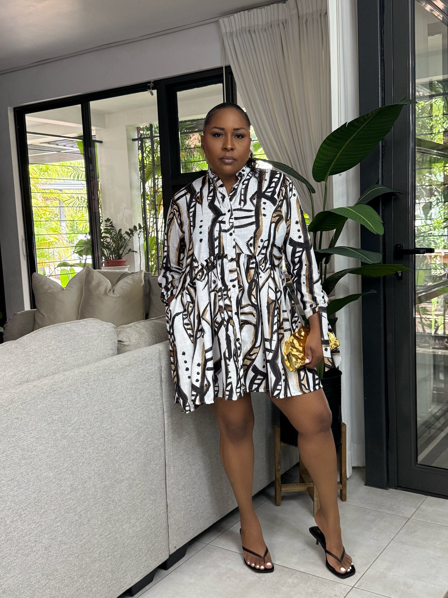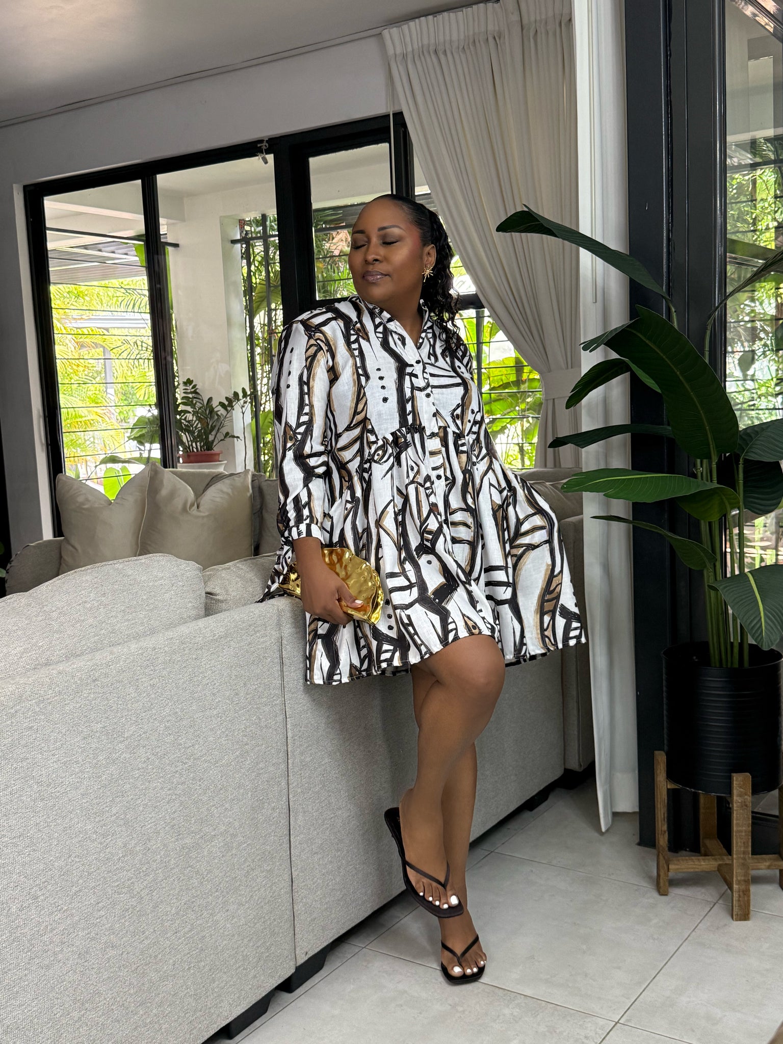Your Favorite Style is back in our newest print - TRIBAL! The Cameroon is a super flattering and ultra-versatile any occasion dress. An easy to wear loose-fitting dress of your dreams. In our Cameroon Dress you can go from picnics to pre-drinks effortlessly. Features a sleek, eye catching abstract print and the cutest tie details at the sleeve. If making a statement is more your vibe, through on your killer earth tone or black heels. Match it with some chunky white trainers or add some edge with fall trending boots!