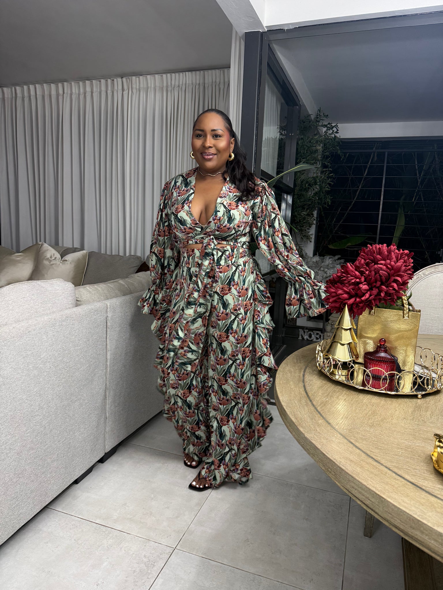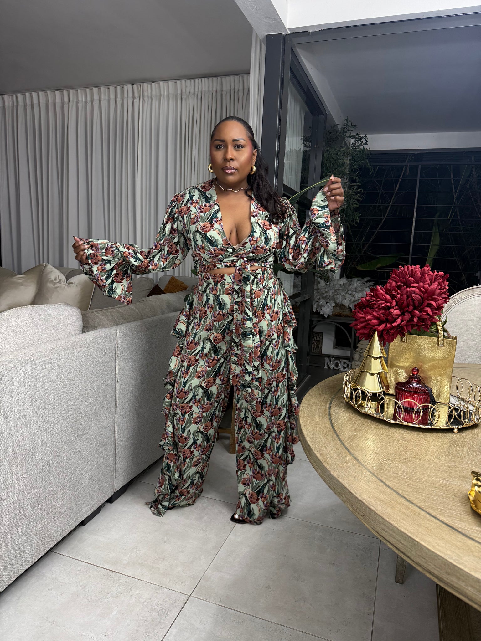 This is Cabana at its most elevated. The St. Barts Edition is a statement two piece designed to command a room, featuring a dramatic bell sleeve top and signature ruffle detailing that cascades down the leg for movement, length, and undeniable presence. Finished with a polished front waistband and an elasticated back for comfort, it delivers that rare balance of ease and couture drama.